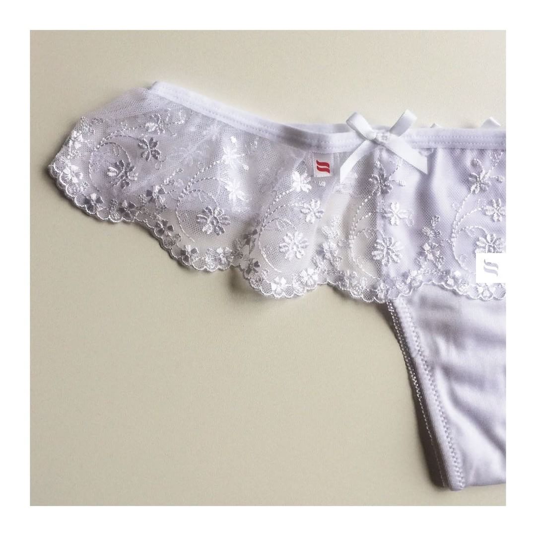 Цветочные кружева охватывает бедра, а гладкая ткань обеспечивает полный комфорт при ношении. Стринги украшены двумя симпатичными атласными бантиками спереди и один сзади. Приятная на ощупь, эластичная ткань.
