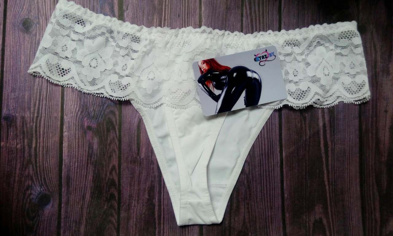 Основная часть трусиков выполнена из эластичного, мягкого, приятного к телу белого полотна, сзади уменьшается в объеме и приоткрывает твои аппетитные формы.