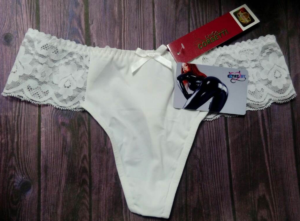 Основная часть трусиков выполнена из эластичного, мягкого, приятного к телу белого полотна, сзади уменьшается в объеме и приоткрывает твои аппетитные формы.