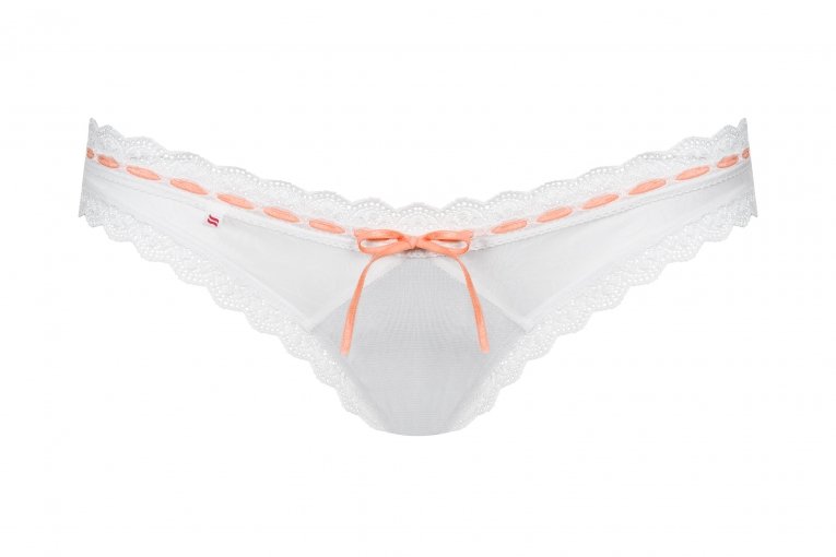 Верх трусиков украшает тонкая атласная лента, завязанная в облазнительный оранжевый бантик и нежная кружевная вставка, они и добавляют образу игривости.
