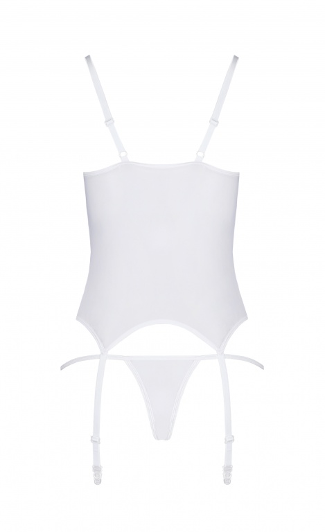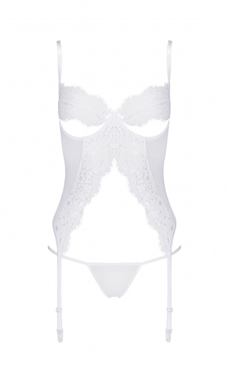 Бретели и подвязки регулируются по длине. Изделие декорировано эффектным цветочным кружевом.