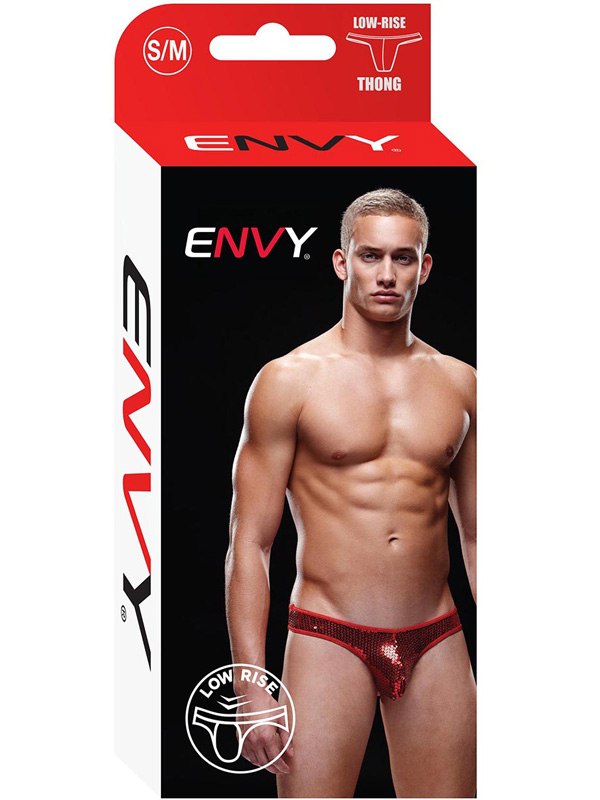 Мужские трусы-тонги спереди декорированы блестящими пайетками и идеальны для особого случая. Сзади выполнены из полупрозрачного материала.