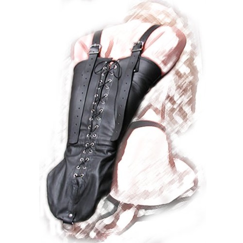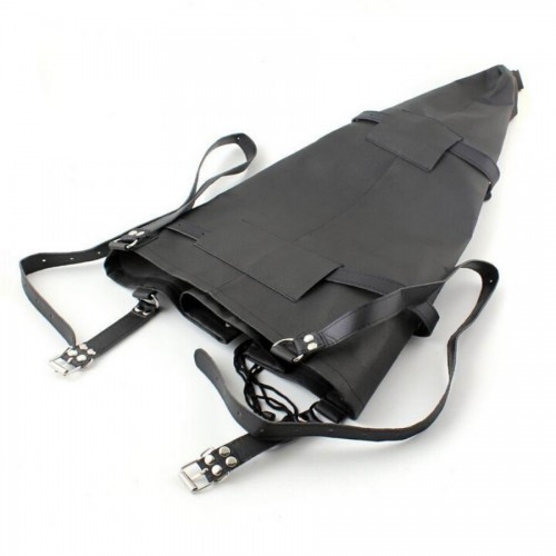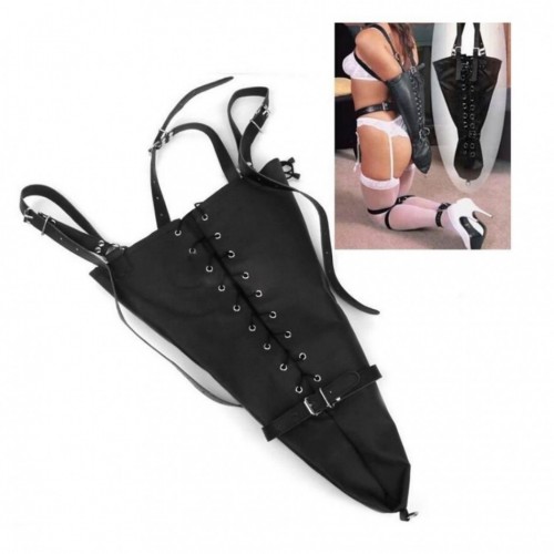 Заплечный бондаж представляет собой большой черный конусообразный рукав со шнуровкой на двух ремнях. Ремни перекрещиваются и одеваются на плечи сабмиссива, а руки вставляются в рукав и затягиваются шнуровкой!! Полное обездвиживание, полный контроль! Это настолько возбудит Вас и разыграет фантазию, что Вы не захотите его потом снимать!