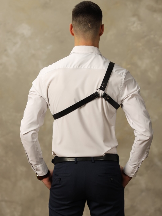 Брутальная БДСМ сбруя для мужчин через одно плечо с заклепками, выполненная полностью из натуральной кожи, поможет разнообразить Ваш совместный вечер и воплотить все тайные желания в реальность!