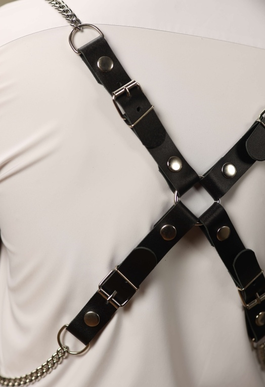 Брутальная мужская БДСМ сбруя, выполненная полностью из натуральной кожи и металлических цепей, поможет разнообразить Ваш совместный вечер и воплотить все тайные желания в реальность!