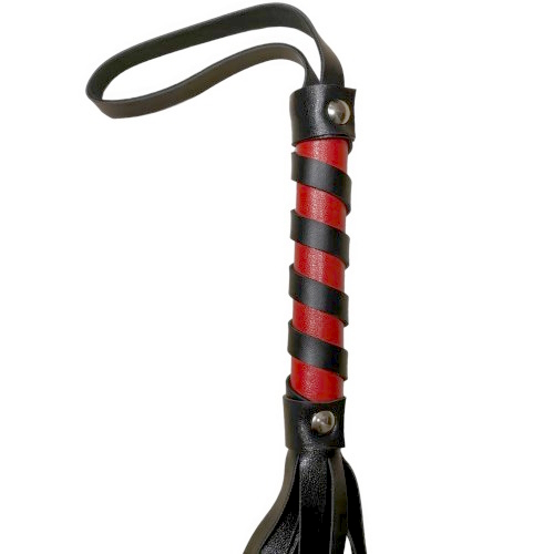 Ручка украшена черно-красным спиральным узором, на конце имеется петелька для того, чтобы плеть удобно лежала в руке во время игр.