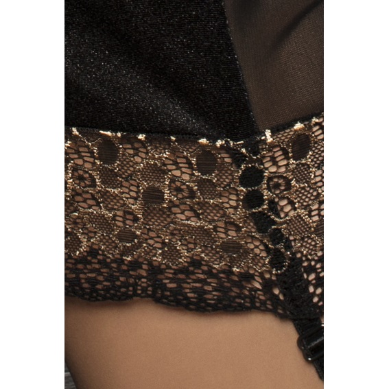 Спинка обнажена. Для чулочков предусмотрены специальные подтяжки.