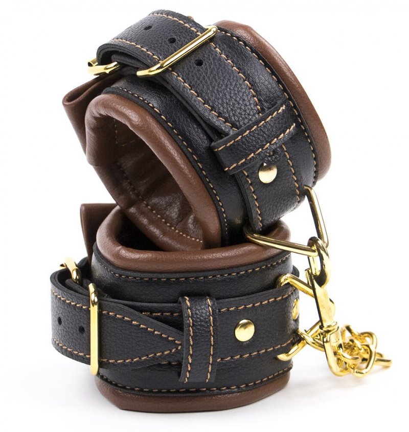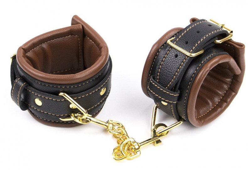 Металлическая фурнитура обеспечивает достаточно качественную фиксацию, расстегнуть поножи самостоятельно, в тайне от доминирующего партнера, практически невозможно.