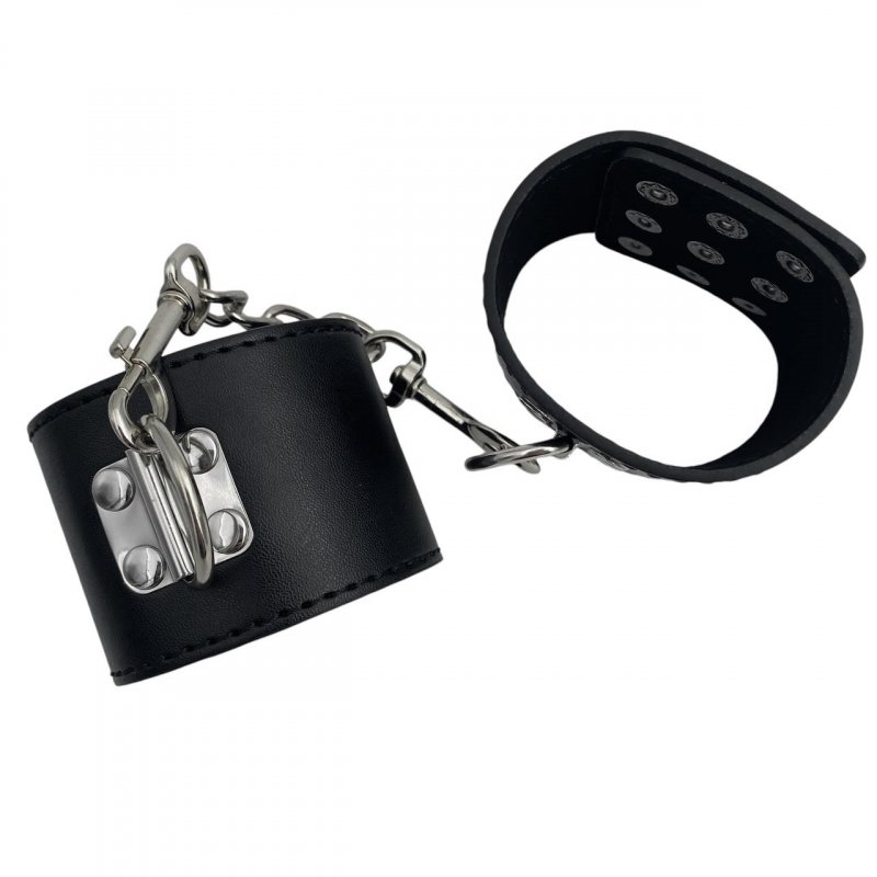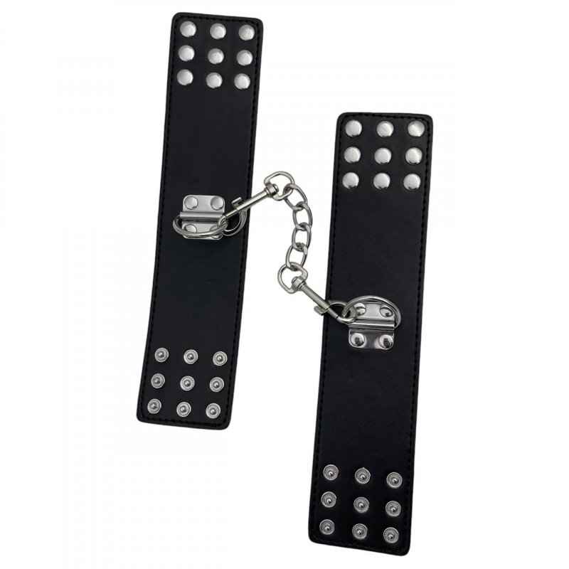 Легко, но надежно наручники фиксируются заклепками, позволяющими выбрать нужный размер. Выполненные из искусственной кожи, они не натирают и не пережимают, максимальный комфорт Ваших игр обеспечен!