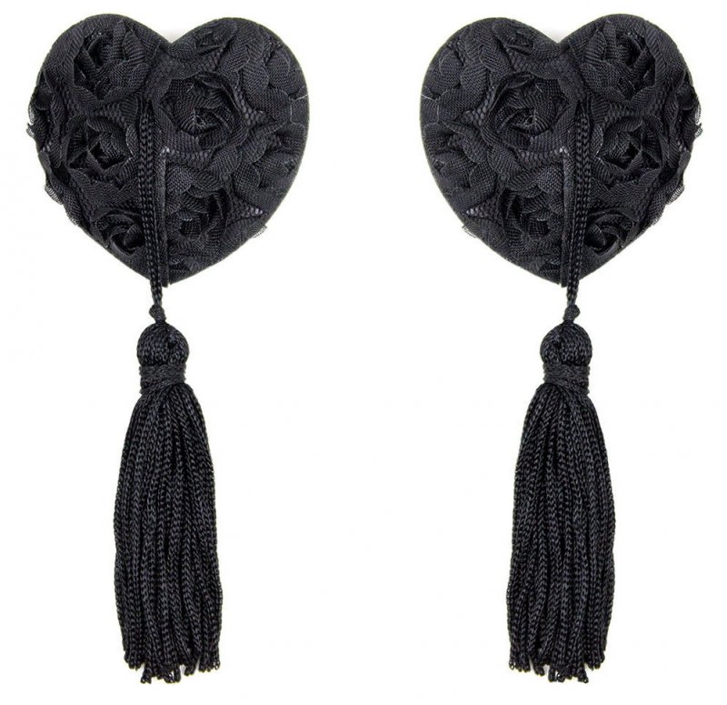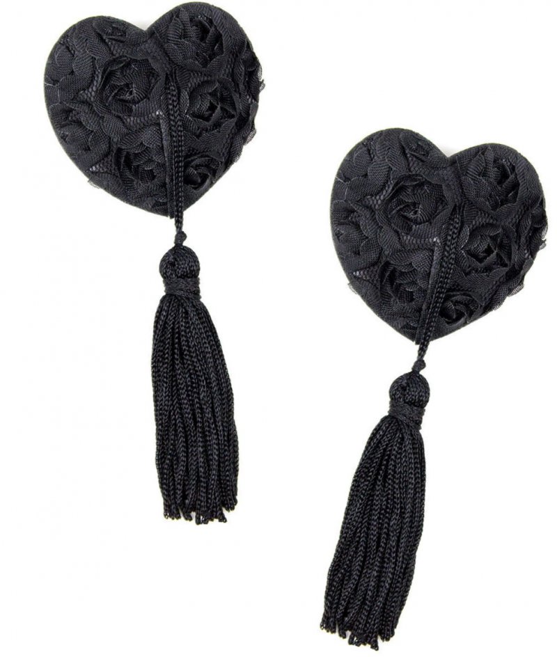 Черные пэстисы в форме сердца, украшенные маленькими розочками, подойдут для придания женственности и игривости.
