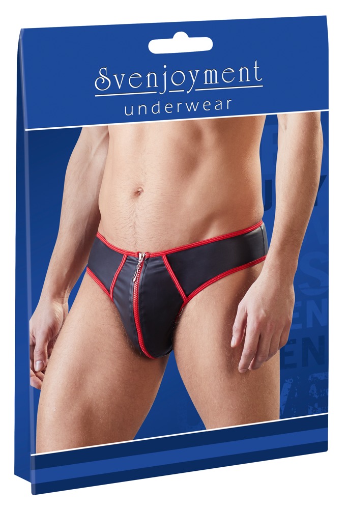Модные чёрные матовые трусы с синим кантом и практичной и декоративной передней молнией!