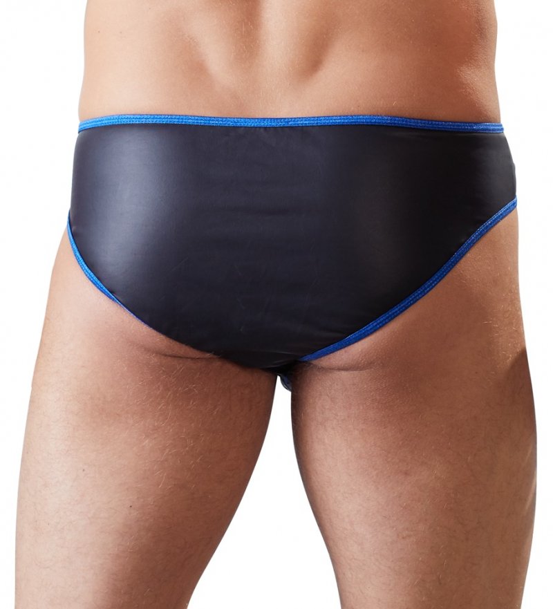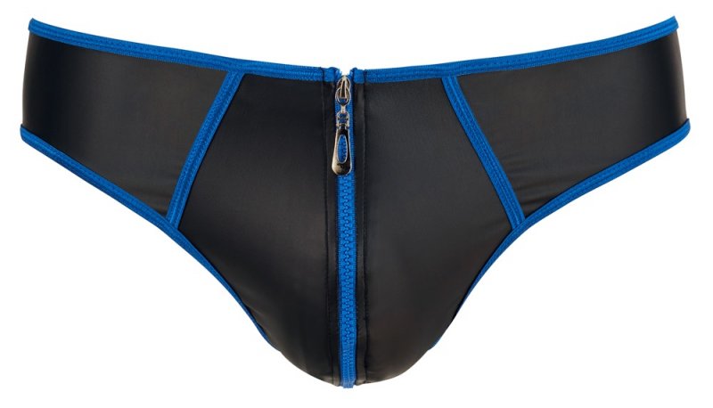 Модные чёрные матовые трусы с синим кантом и практичной и декоративной передней молнией!
