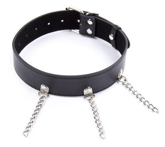 Размеры: ширина ошейника 3 см, по обхвату регулируется от 32 до 48 см, длина цепочек 7 см