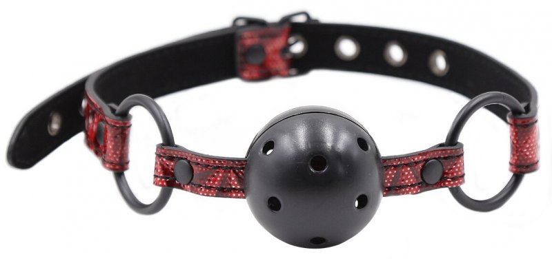 Кляп-шар имеет универсальный размер, который удобно регулируется при помощи пряжки, а специальные дырочки в шаре облегчают дыхание и обеспечивают полный комфорт.