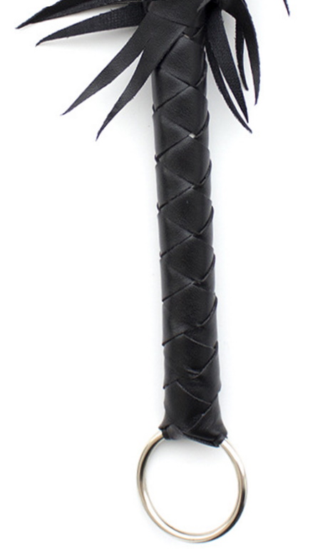 Плетеный кнут имеет удобную твердую рукоять с металлическим колечком на кончике.