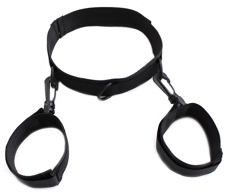 С помощью пластиковых карабинов наручники крепятся к ошейнику. Также Вы можете использовать фиксаторы и по отдельности!