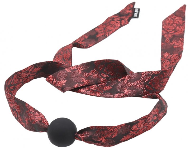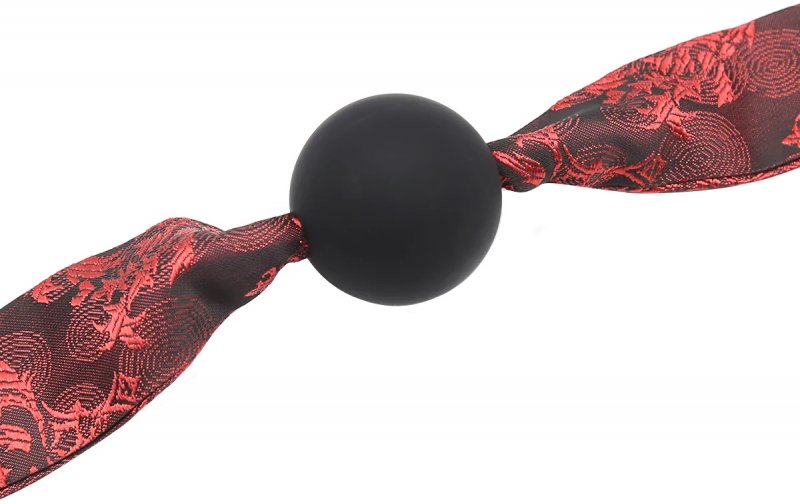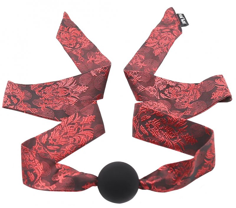 Кляп невозможно выплюнуть, он надежно фиксируется при помощи ленты, которую можно завязать, подобрав комфортный размер. Декорированная красным узором лента добавит образу особый шарм...