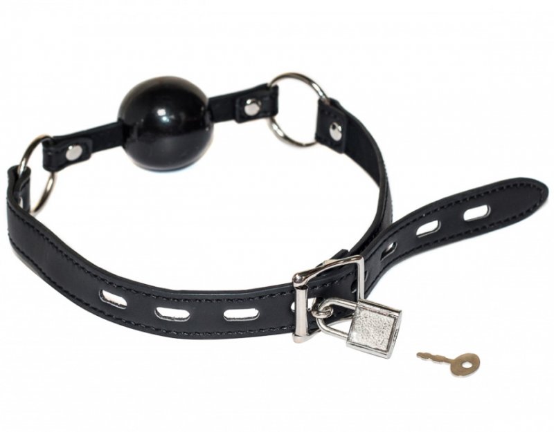 Кляп невозможно выплюнуть, он надежно фиксируется при помощи ремешка, который регулируется с помощью пряжки и фиксируется замочком - так Ваш партнер никогда не сможет снять кляп без разрешения.