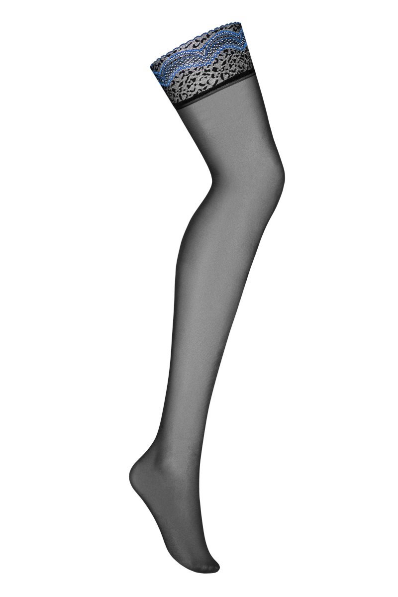 Детали: чулки выполнены из тонкой прозрачной сетки, в зоне бедра украшены сапфировой полоской-орнаментом, эластичная идеально облегающая ноги ткань.