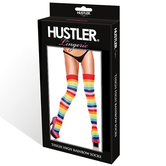 Чулки с принтом в разноцветную полочску.