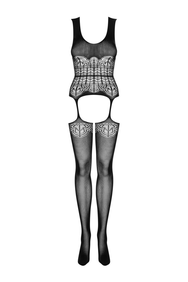 Чувственный боди-комбинезон - это идеальное сочетание слегка полупрозрачного материала и элегантного рисунка.