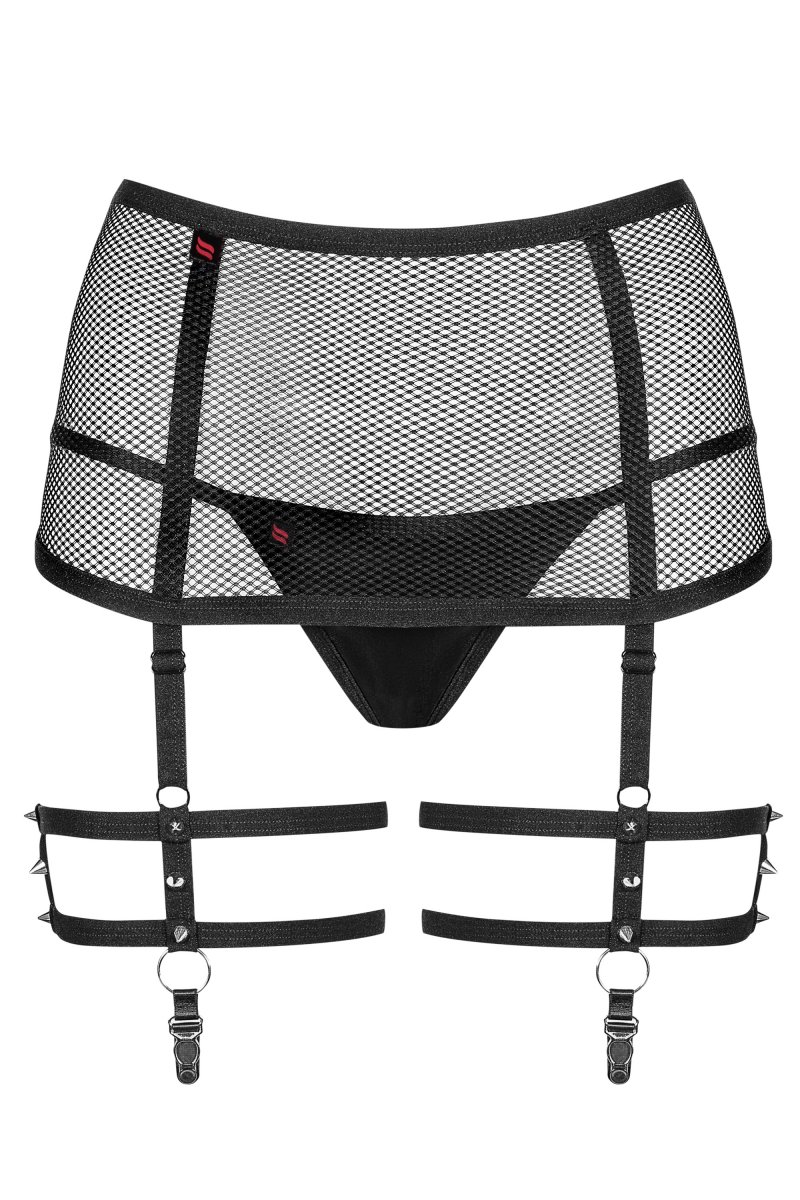 Пояс для чулок выполнен из полупрозрачной сетки, соблазнительно облегающей тело.
