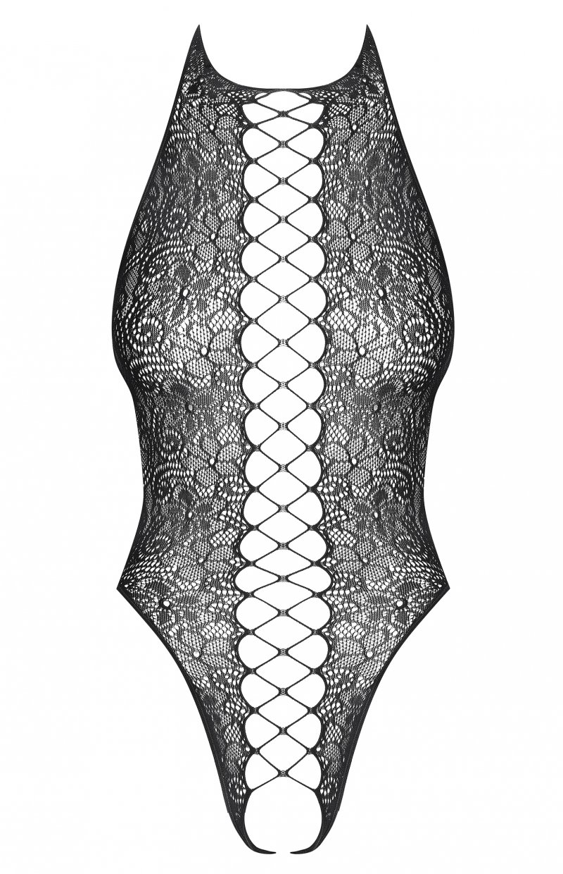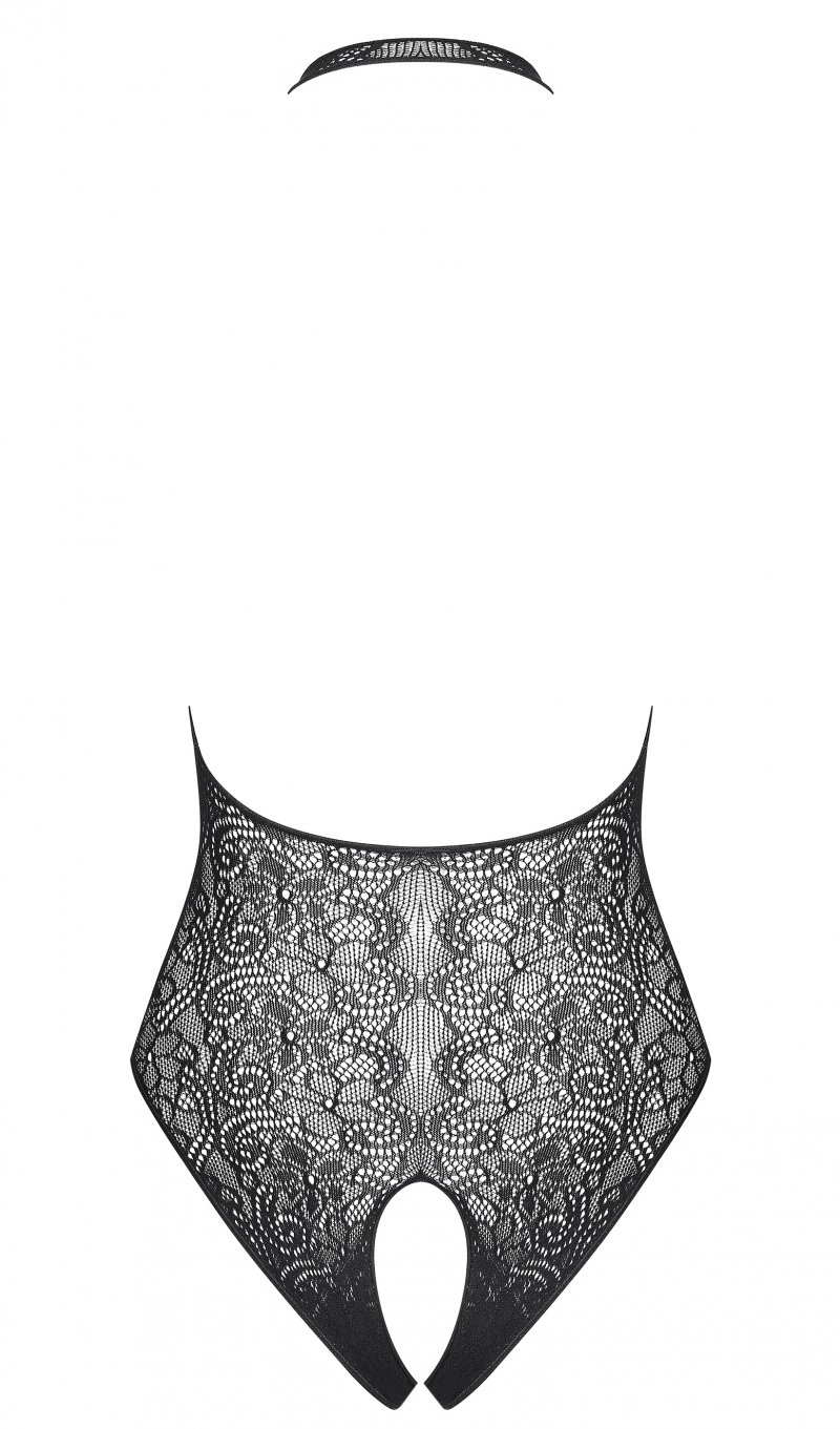 Детали: соблазнительное, черное боди с нежным цветочным узором, ремешок на шее - кокетливо обнаженная спинка, имитация шнуровки спереди - пикантная деталь, открытая промежность, исключительно четкий рисунок и прочное переплетение, эластичный и идеально облегающий трикотаж Multistretch.