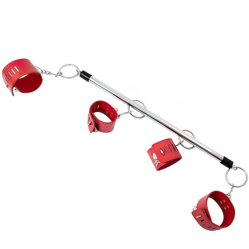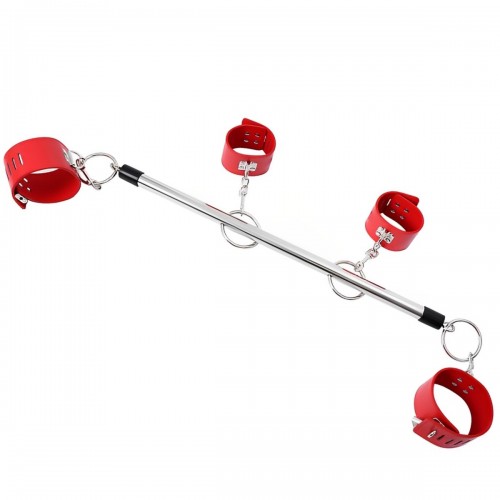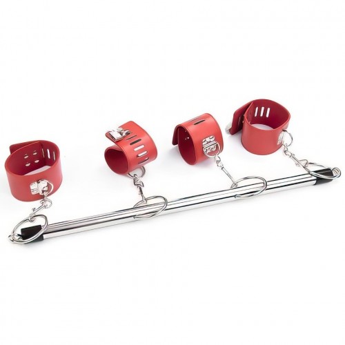 Металлическая распорка со съемными красными наручниками и поножами на карабинах полностью лишит Вашу вторую половинку свободы действий!