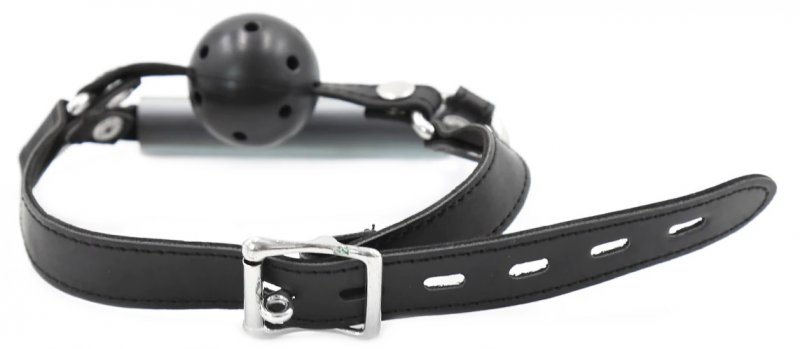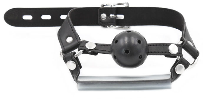 Кляп-шар выполнен из пластика и имеет дырочки для облегчения дыхания. А длинный трензель невозможно выплюнуть, он надежно фиксируется при помощи ремешка, при этом удобен для использования.