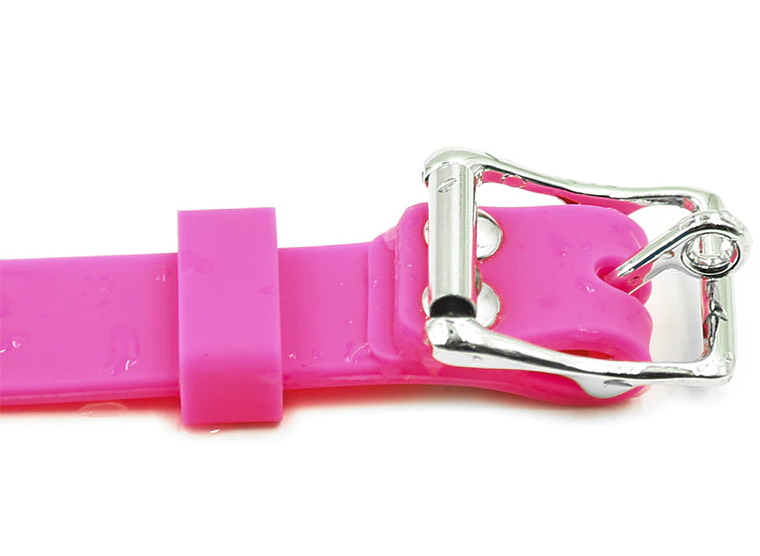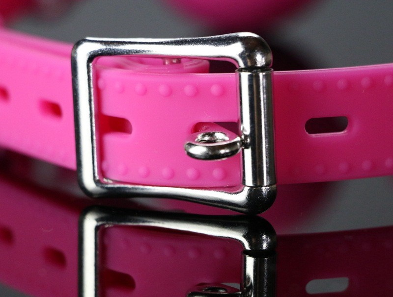 Кляп невозможно выплюнуть, он надежно фиксируется при помощи ремешка, который имеет универсальный размер и удобно регулируется пряжкой.