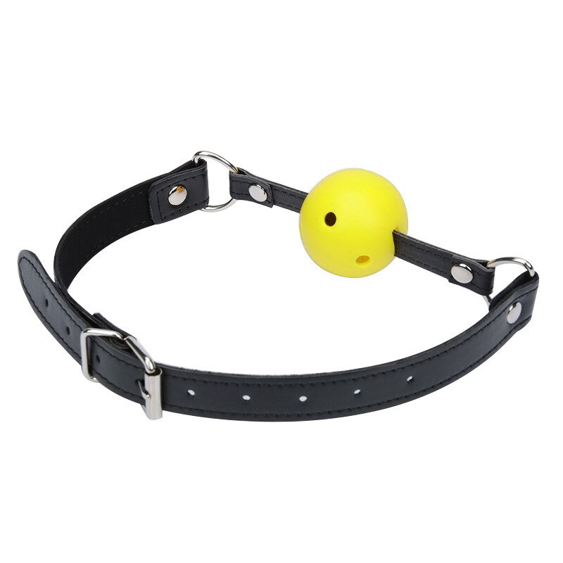 Кляп-шар имеет универсальный размер, который удобно регулируется при помощи пряжки, а специальные дырочки в шаре облегчают дыхание и обеспечивают полный комфорт.