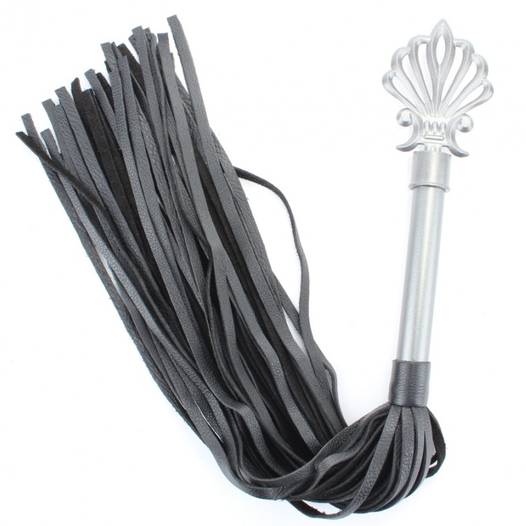Эксклюзивная плеть с резной серебристой ручкой в готическом стиле 60 см