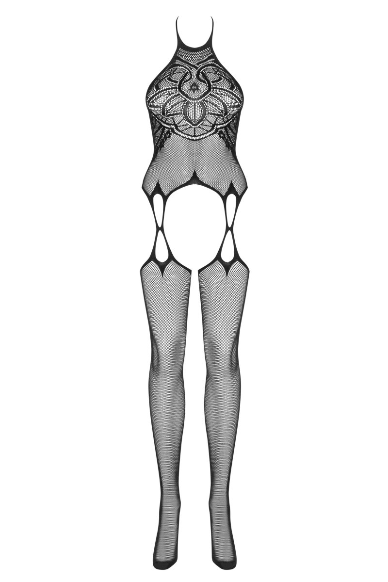 Детали: феноменальный боди-комбинезон - сочетание трикотажного топа и чулок, чувственное, плотное переплетение, ремешок надевается на шею - соблазнительно обнажается спина, необычный геометрический узор подчеркивает бюст и бедра, сексуальное сочетание с чулками, решение 3SKnit - плетение прочное, а узоры выглядят идеально, приятная на ощупь и чрезвычайно эластичная ткань.