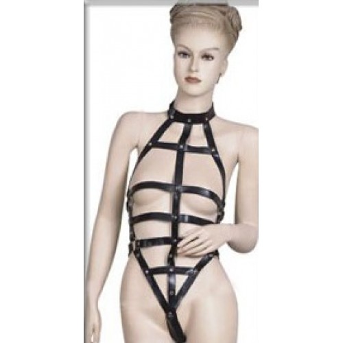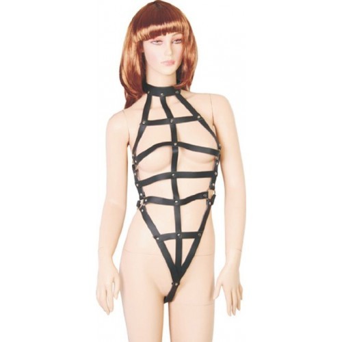 Кожаная сбруя по форме напоминает удобное сексуальное боди.