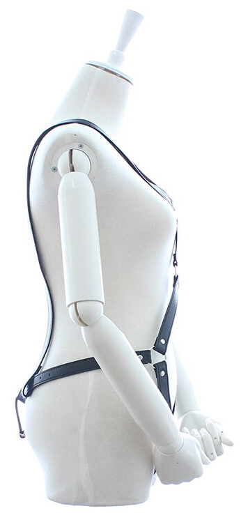 Кожаная сбруя по форме напоминает удобное сексуальное боди.