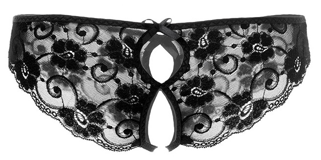 Коварный вырез в интимной зоне разжигает огонь желания и позволяет наслаждаться страстными играми, не снимая при этом трусики.