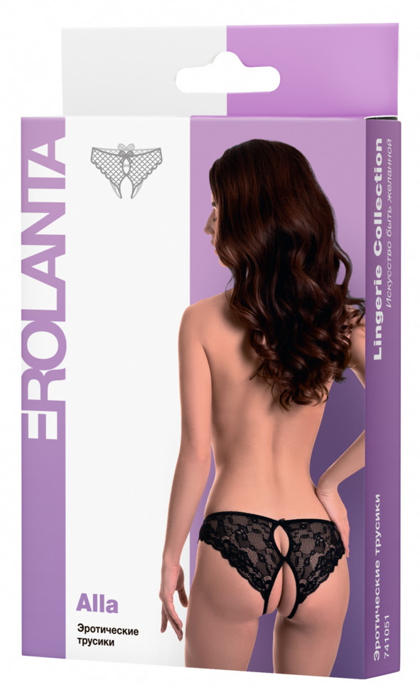 Эротические трусики Erolanta Alla кружевные, эластичные, с фигурными вырезами, с атласными бантиками, со свободным кружевным краем.