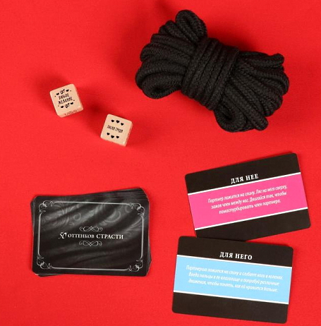 Эротический набор 50 оттенков страсти: веревка, 2 кубика, фанты