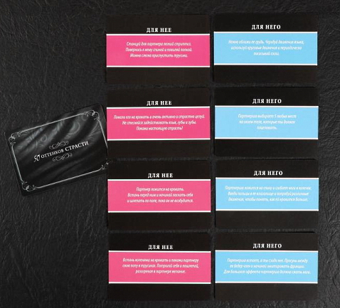 Внутри вас ждёт 10 карт с ролевыми играми. Внимательно их изучите и выберите ту, которую будете использовать сегодня. По желанию можно подготовить костюмы и реквизит, чтобы обеспечить полное погружение. Осталось только подарить друг другу незабываемые эмоции!