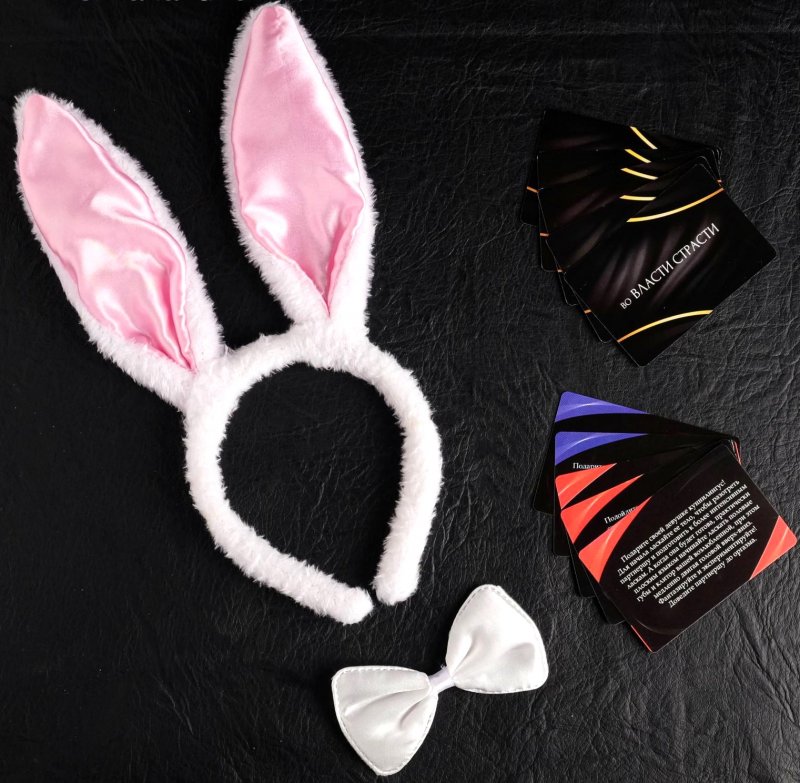 Эротический набор Во власти страсти: Девушка-плейбой - ободок с ушками, галстук-бабочка, 10 карт