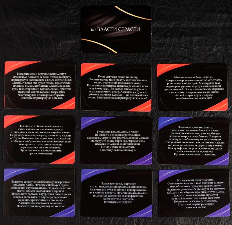 Внутри вас ждёт 10 карточек с фантами, а именно — с вариантами ролевых игр.