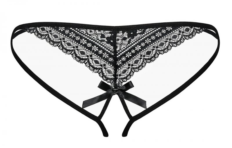 Детали: соблазнительные стринги с открытой промежностью, кружевные аппликации добавляют шарма, бантик на ягодицах - очаровательная деталь, деликатная ткань и эластичные ленты.