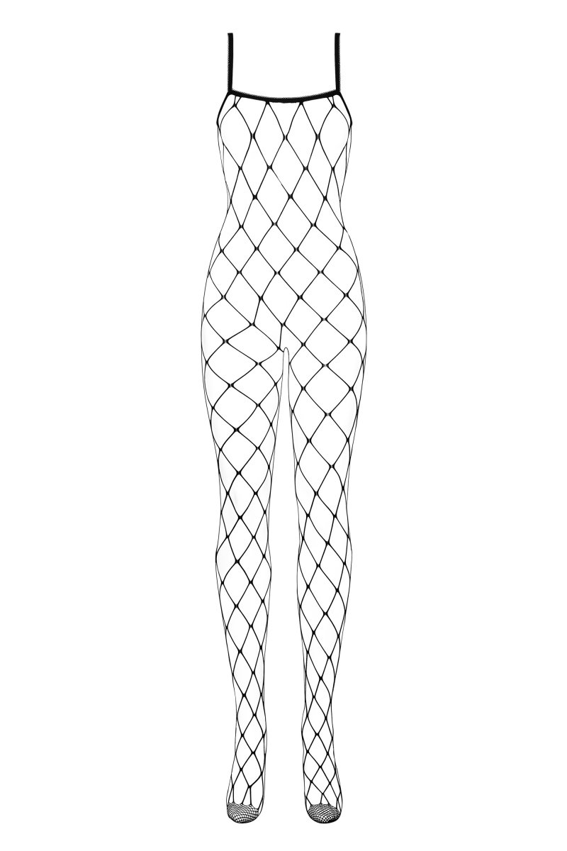 Очаровательный кэтсьюит выполнен из эластичной ажурной сетки.