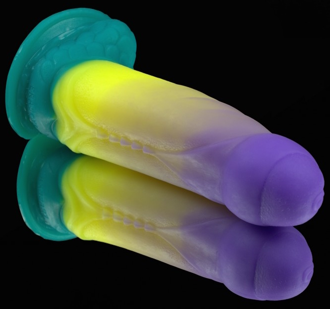 Его яркий и необычный дизайн совмещает в себе нежную и плавную головку с легкими линиями, уздечку с рельефными складками, ствол с маленькими шипами и устойчивое основание игрушки.