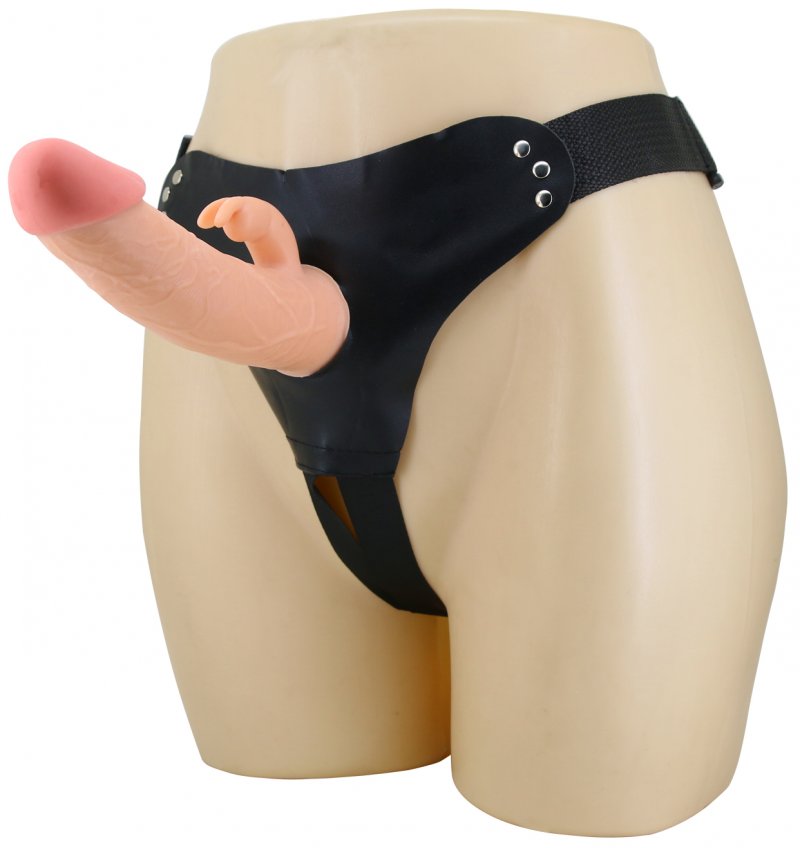 Игрушка представляет собой реалистичный пустотелый страпон с прожилковым рельефом и ярко выраженной головкой. Насадка дополнительно оснащена небольшим клиторальным стимулятором в виде кролика, который будет ласкать Вашу партнершу при каждом проникновении.