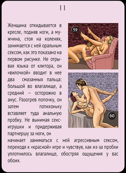 Большинство «красных» заданий предлагает попробовать различные секс-эксперименты с дополнительными предметами. И не просто предлагает, а рассказывает и даже показывает, как получить от них максимум удовольствия. На фантах есть не только письменные рекомендации, но и весьма познавательные иллюстрации.