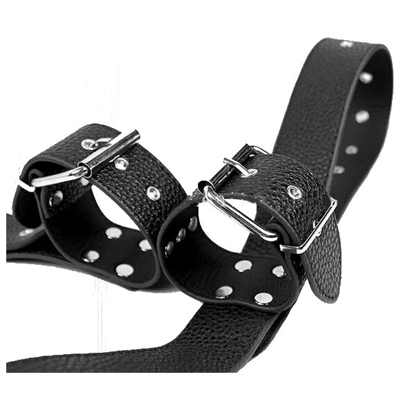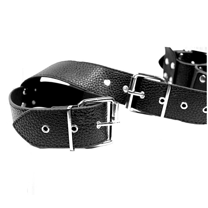 Фиксатор застегивается на шее, можно расположить манжеты за спиной или же спереди по желанию.