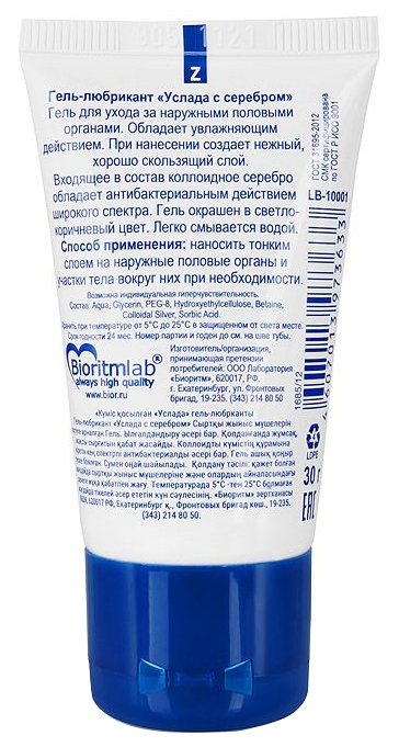 Гель-лубрикант Услада с серебром обеспечивает защиту слизистых от повреждений и препятствует распространению патогенных микробов во время полового акта!