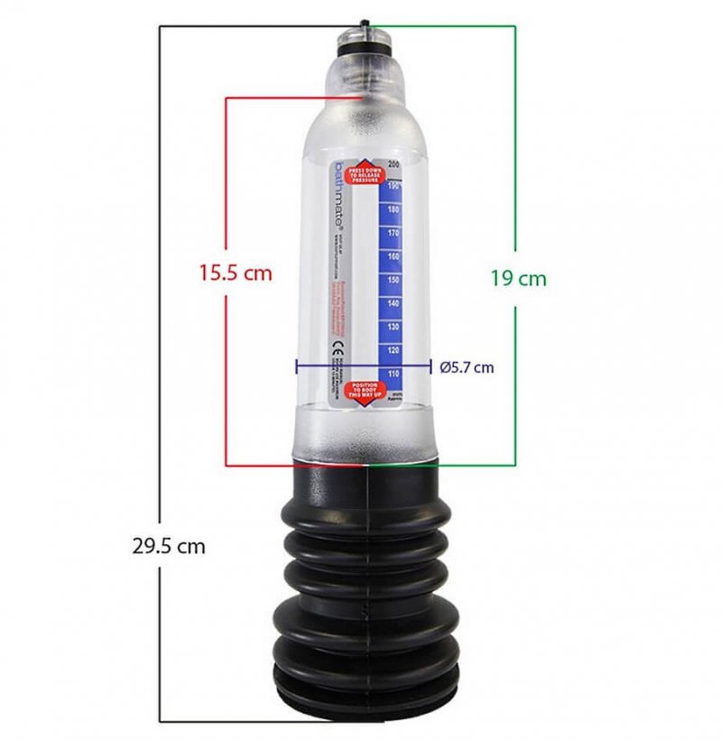 Гидропомпа HYDRO7 идеально подходит при толщине пениса в эрегированном состоянии до 4,5 см и длине до 17,8 см.