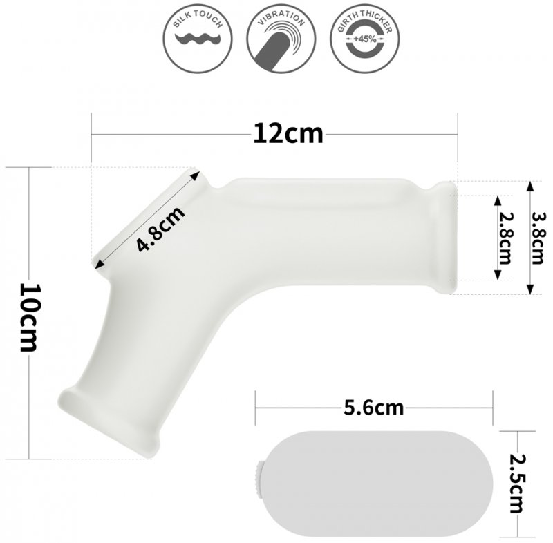 Размеры: внутренний диаметр насадки - 2,8 см, внешний диаметр - 3,8 см; длина части насадки на пенис - 13,3 см, длина части насадки на мошонку - 10 см